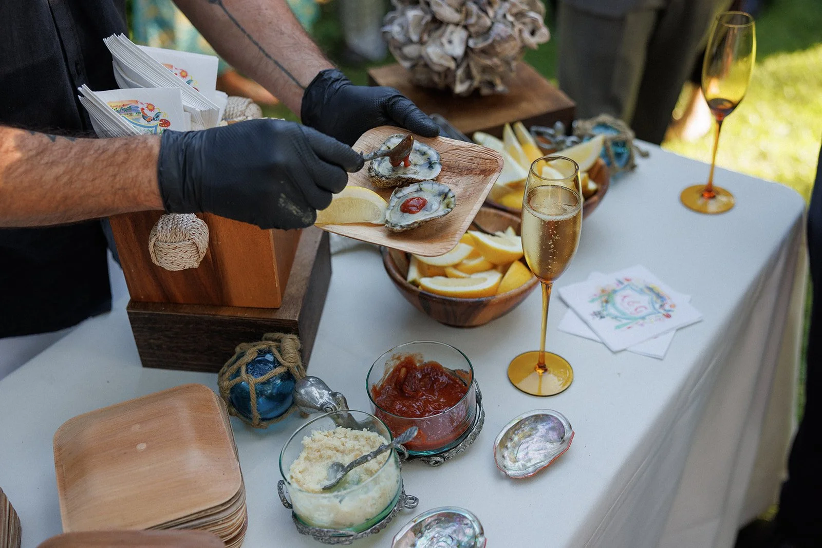 The wedding day involved a lighthearted yet sincere Jewish ceremony at Simpson House officiated by the groom's sibling and their spouse. Guests mingled and enjoyed fresh oysters and champagne for cocktail hour before walking a few short blocks over to Villa & Vine for the al fresco dinner reception.